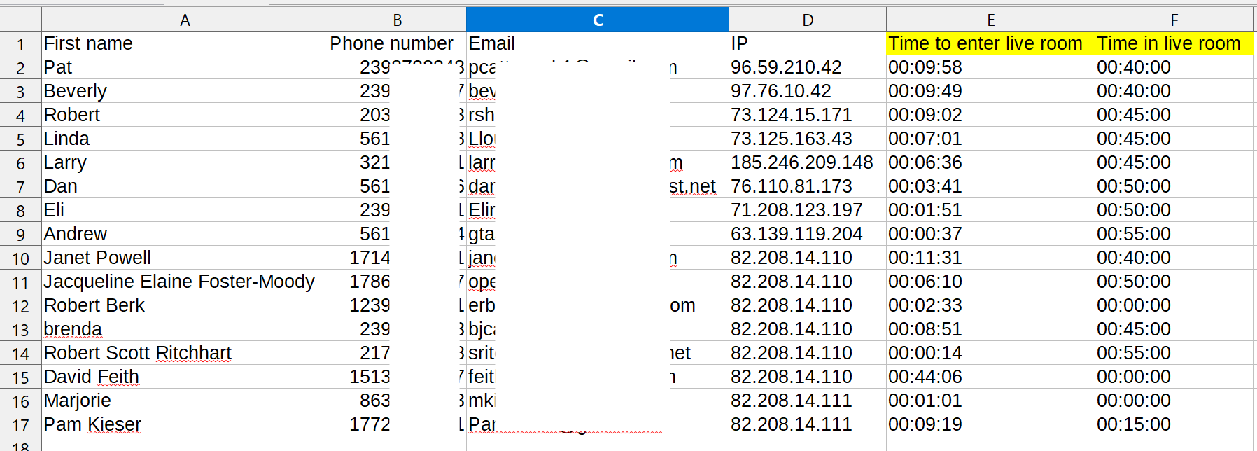 Virtual Seminar Attendee Data